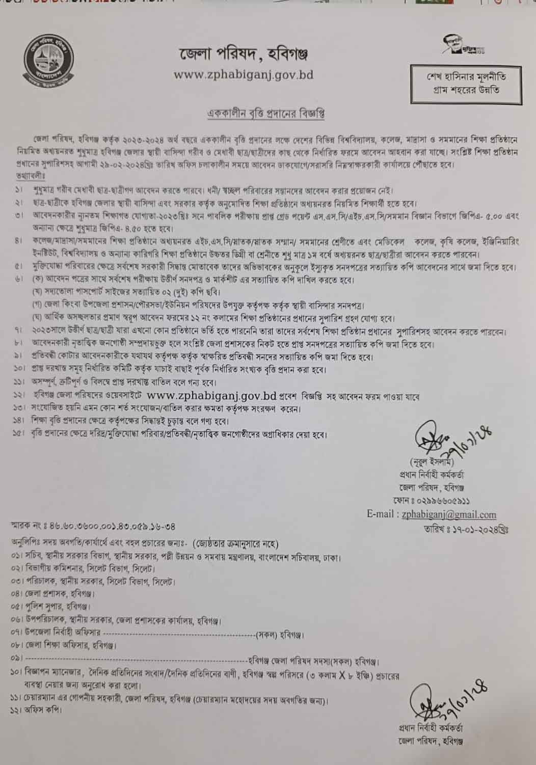 এককালীন ছাত্রবৃত্তির বিজ্ঞপ্তি