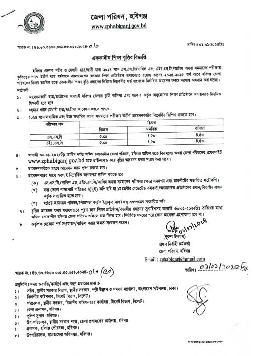 এককালীন শিক্ষা বৃত্তির বিজ্ঞপ্তি